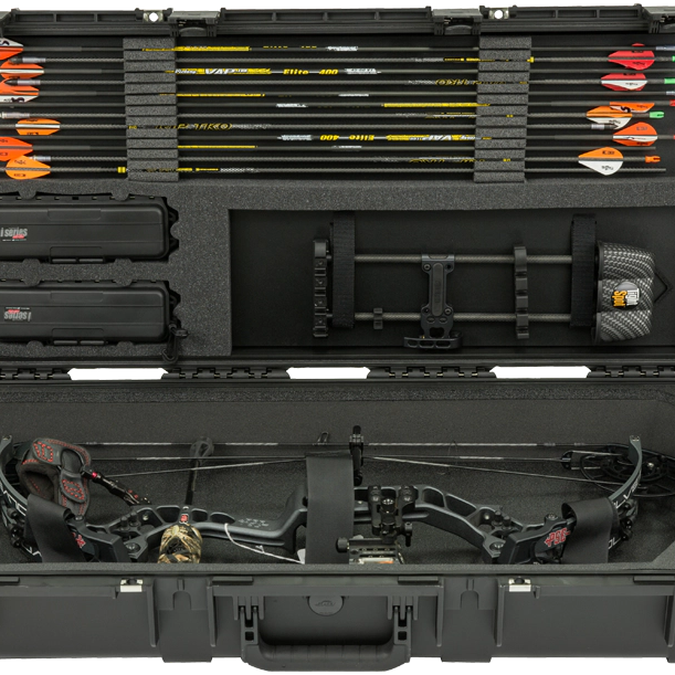 El estuche para arcos iSeries Small Parallel Limb Bow se adapta a arcos de extremidades paralelas de hasta 35″ de largo e incluye compartimentos separados para carcazas, flechas y accesorios (se venden por separado, n.° de pieza 3i-0702-1B).