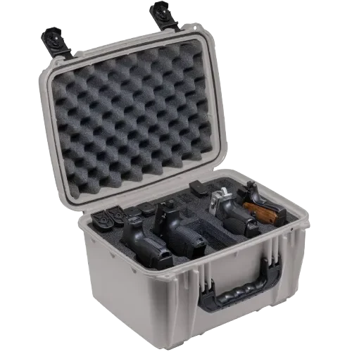 - Capacidad: El inserto de espuma de alto rendimiento está compuesto por espuma de polietileno de celda cerrada de 2 lb, capaz de alojar hasta cuatro pistolas semiautomáticas (incluyendo modelos 1911) y doce cargadores. Además, cuenta con un espacio adicional para accesorios o munición.